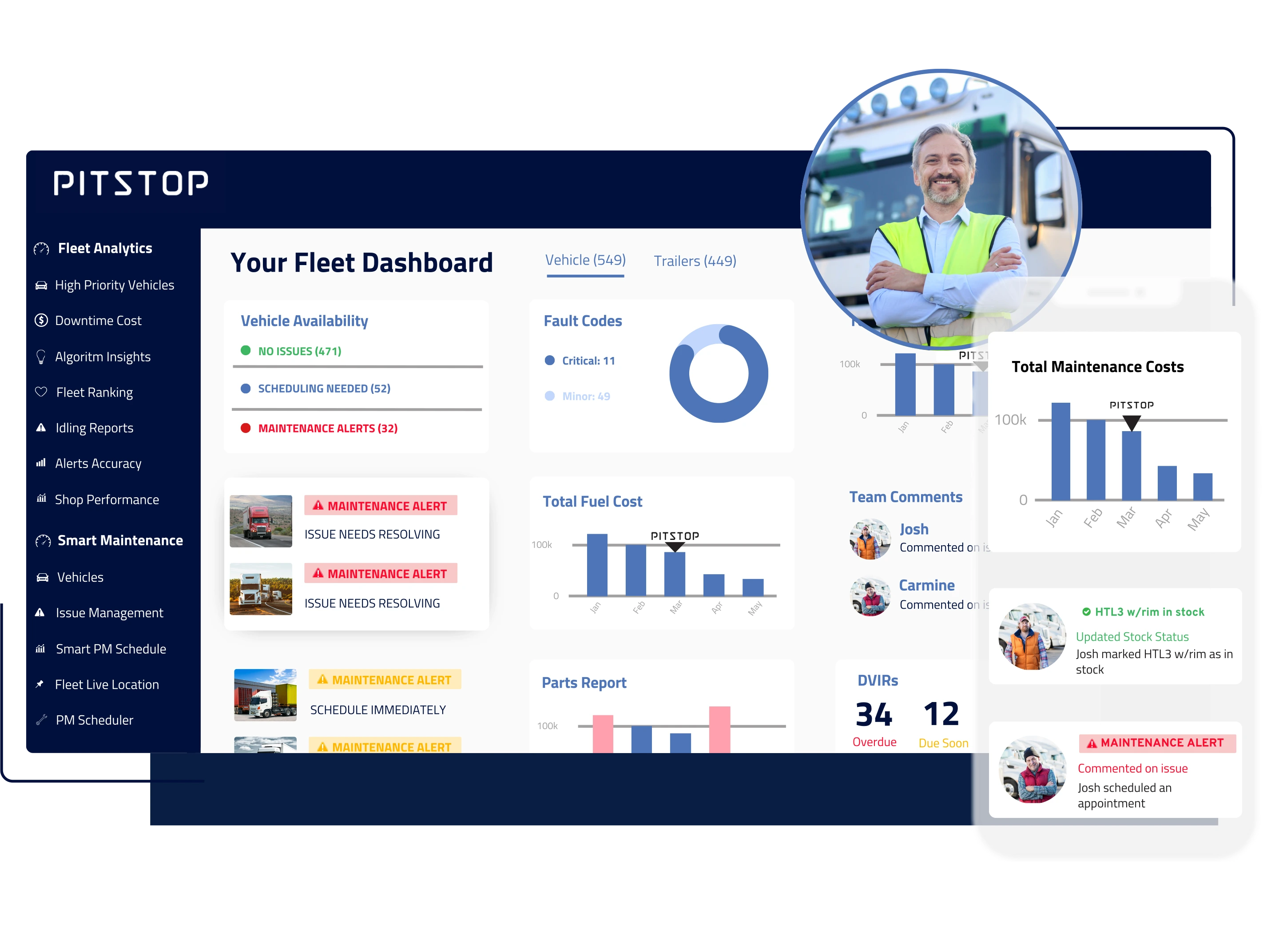 Pitstop is the only AI-driven fleet management platform that uses predictive insights, real-time data, and automation